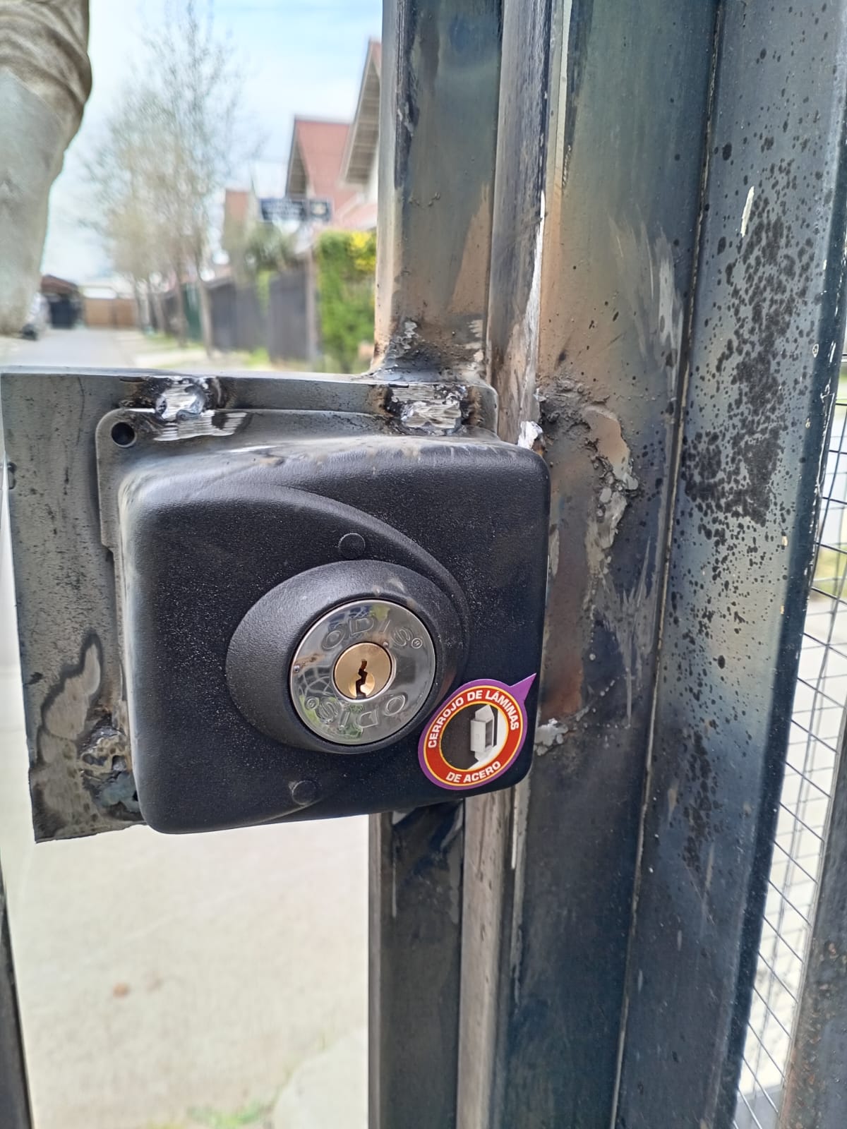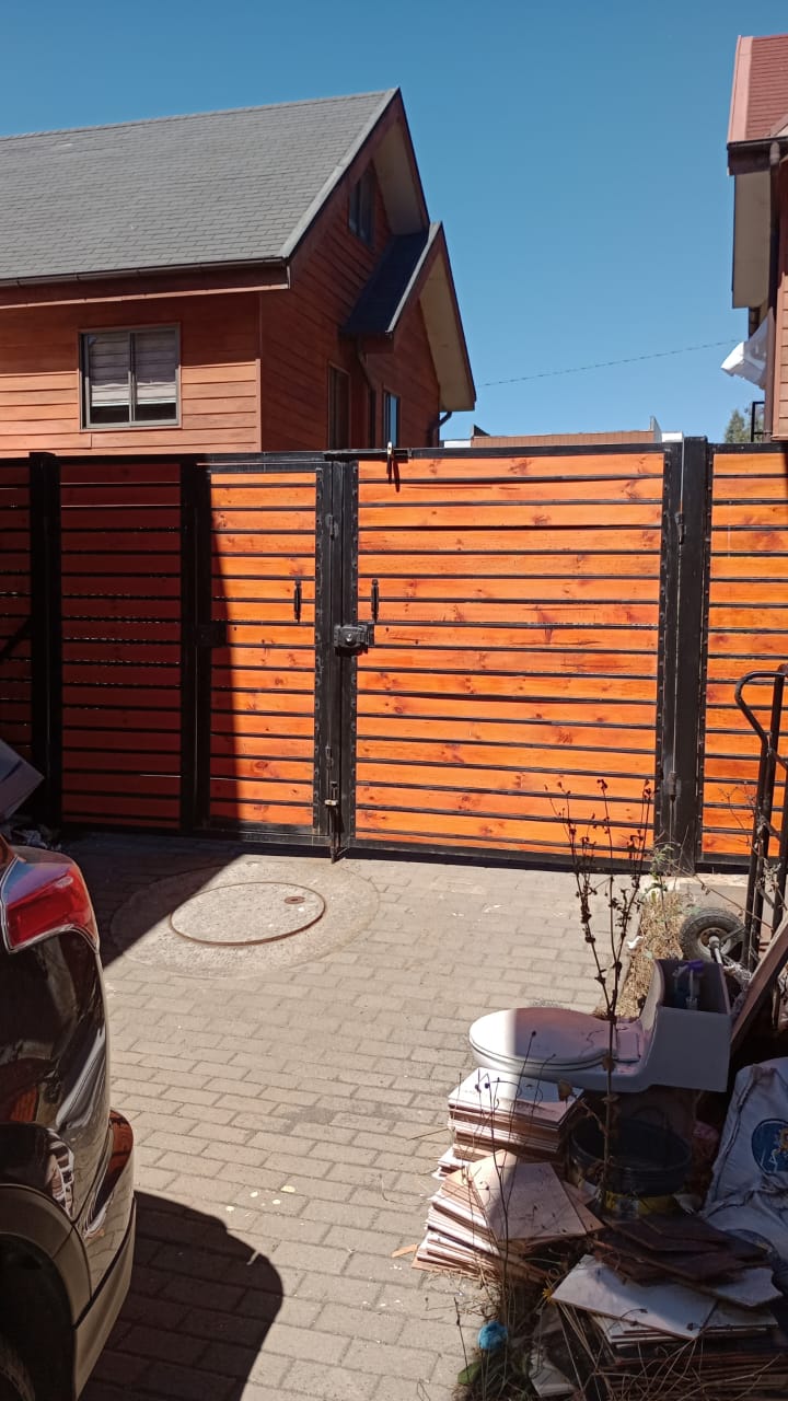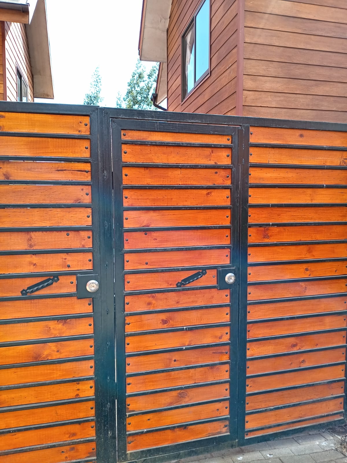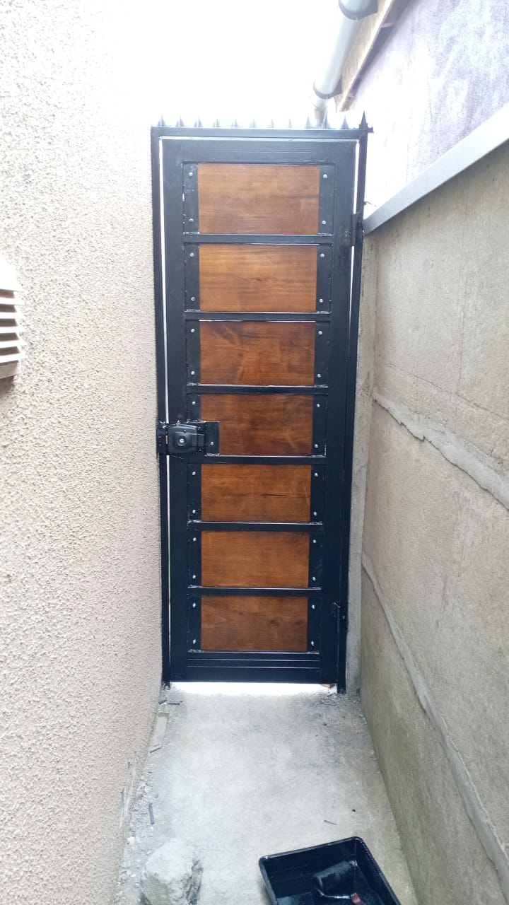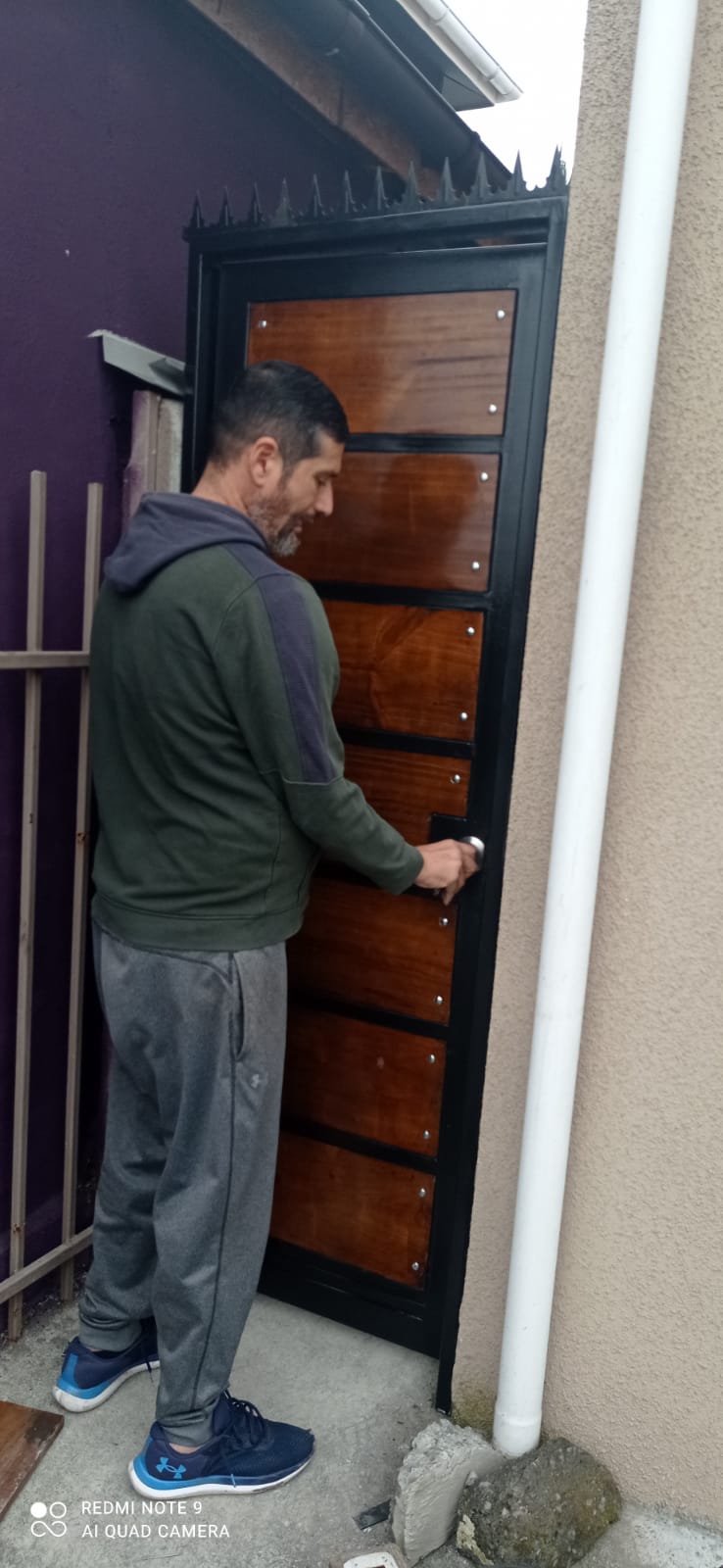 Fabricación de puerta lateral metal - madera con chapa y manilla instalada