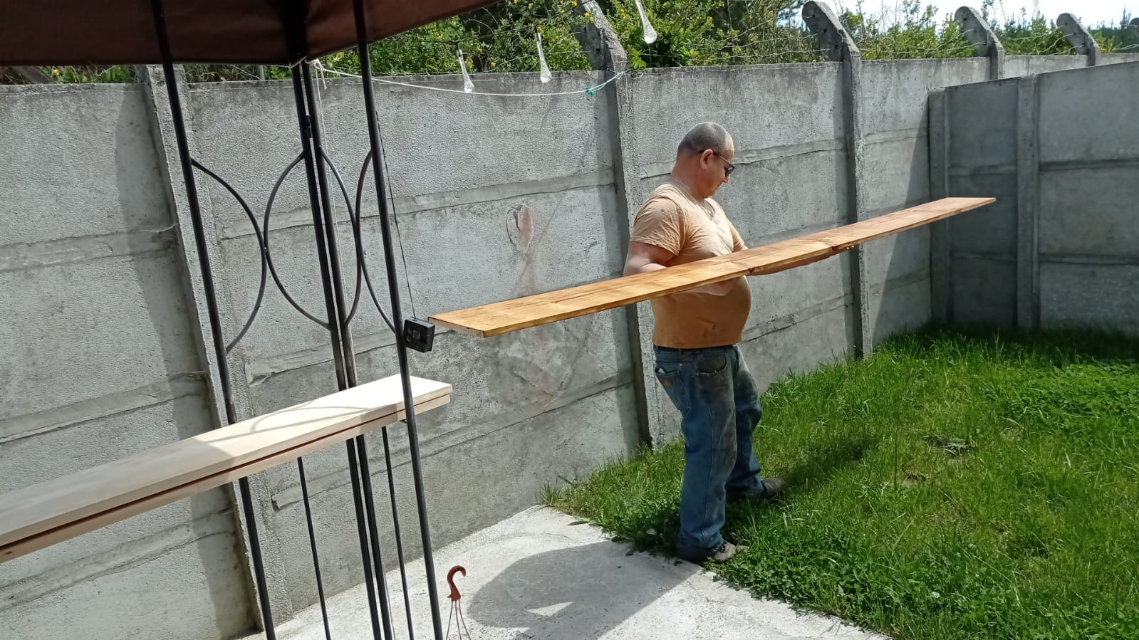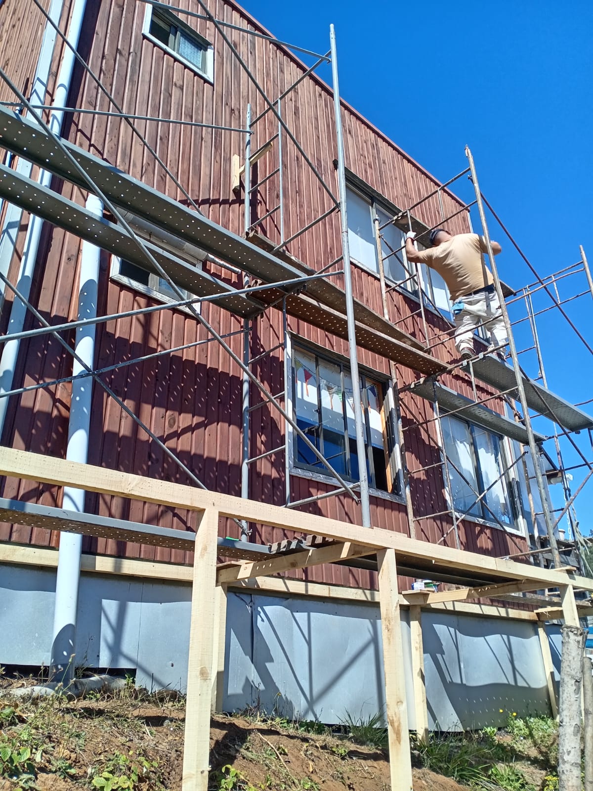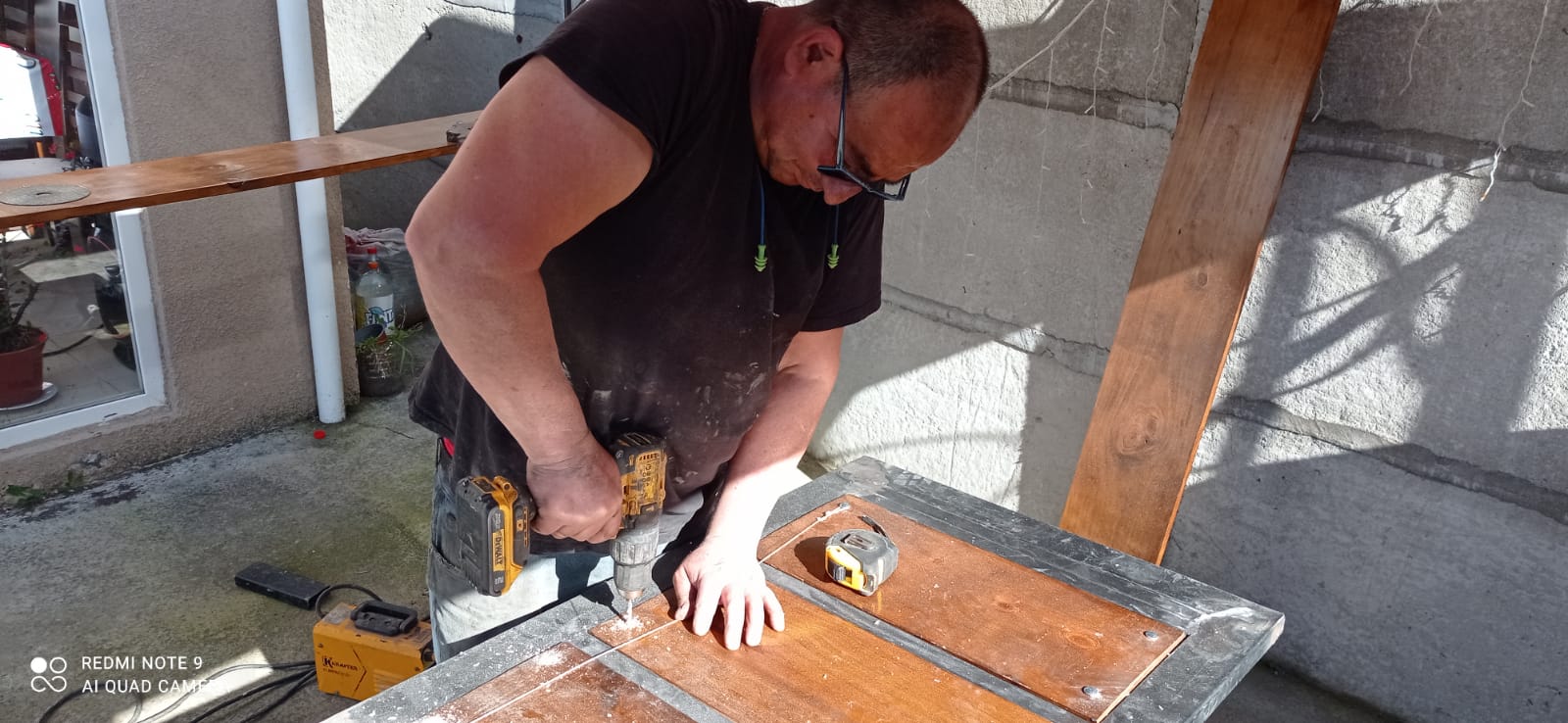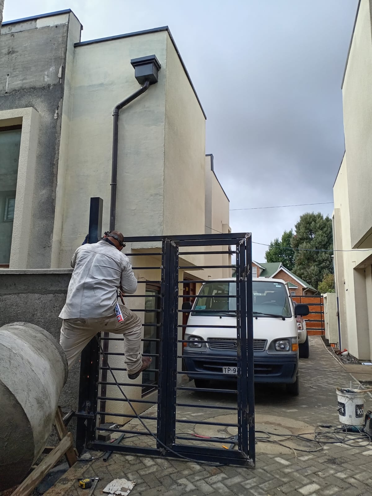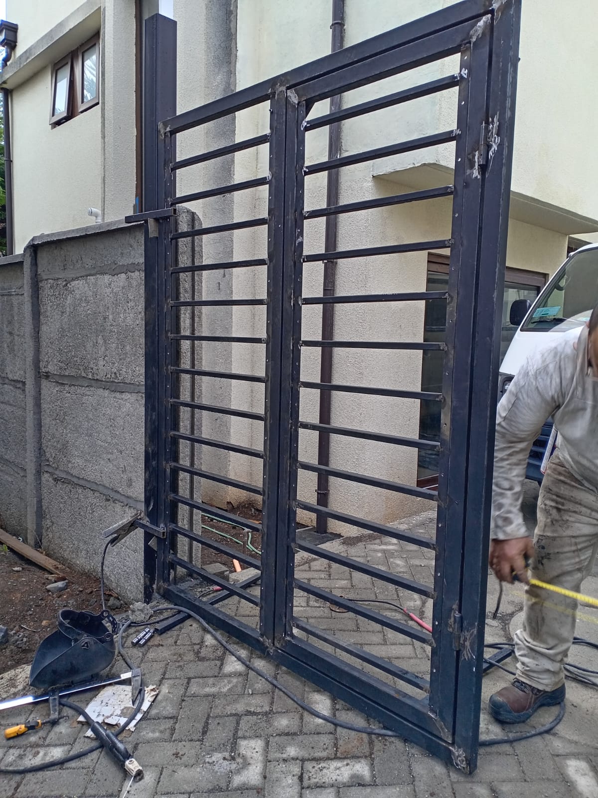 Fabricación de puerta lateral metal - madera con chapa y manilla instalada